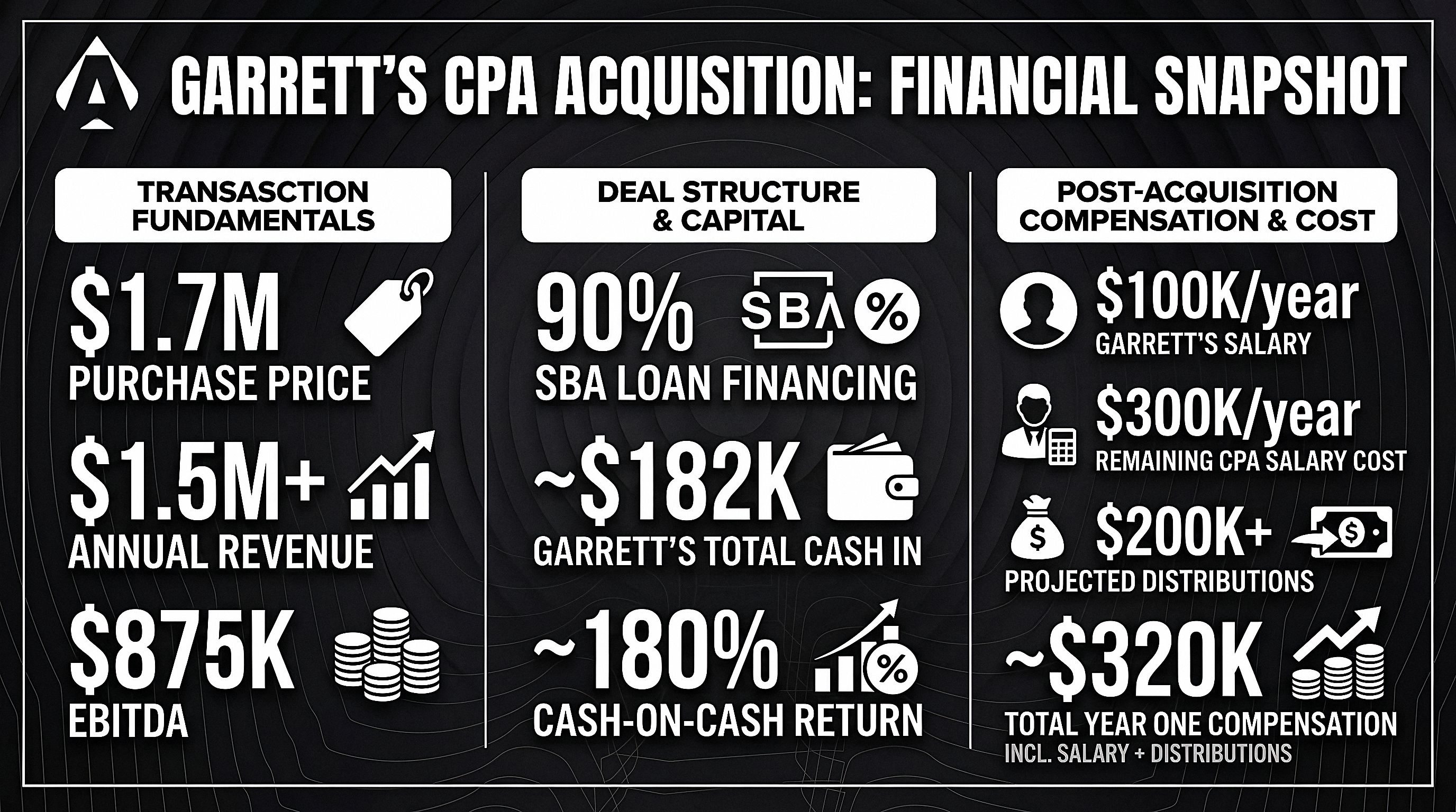 If revenue exceeds $1.6M, the remaining CPA earns 30% of the overage, keeping their interests fully aligned going forward.