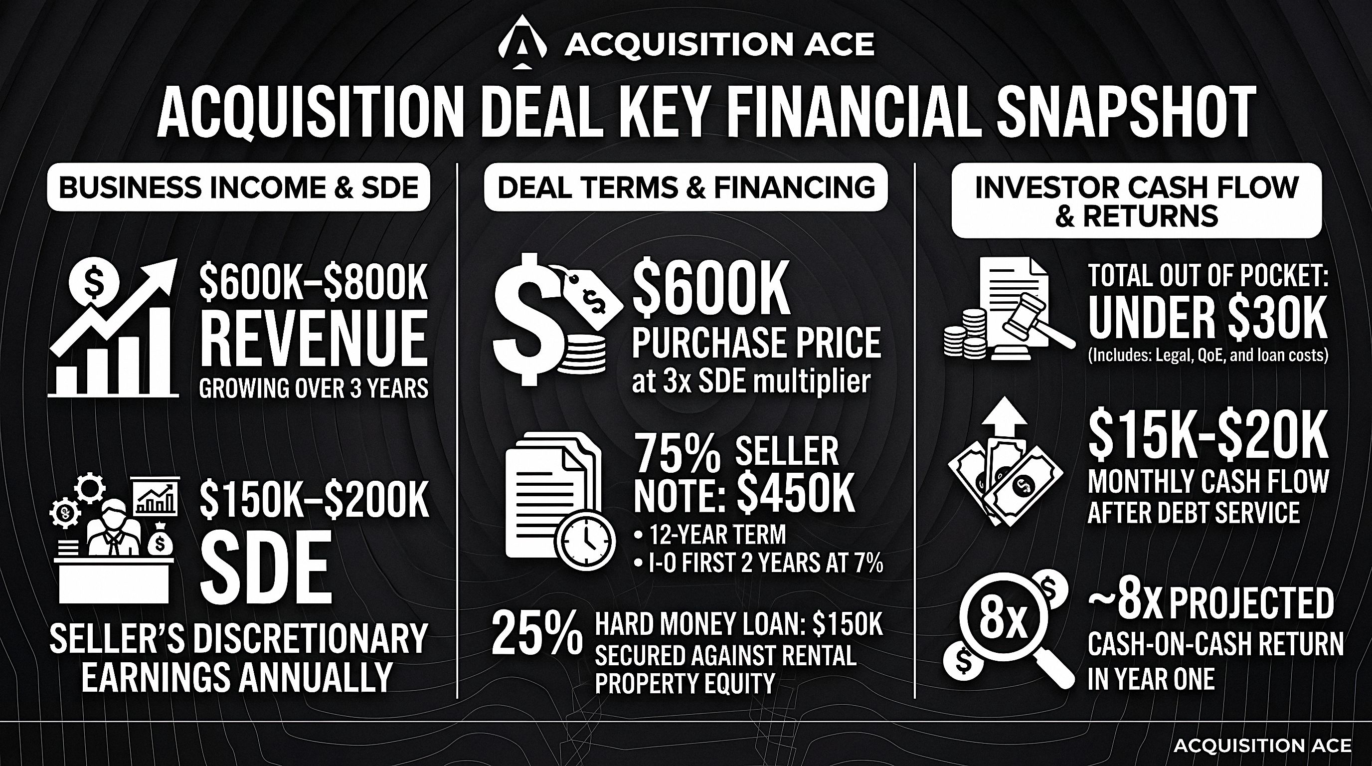 Purchase price: $600K (3x SDE)