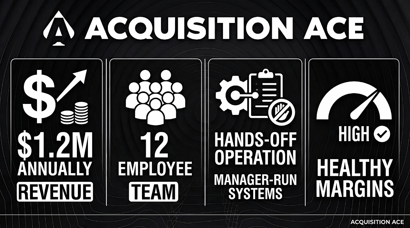 Inside the Acquisition Ace community, we share off-market opportunities and help over 2,000+ members find, finance, and close deals on profitable businesses.